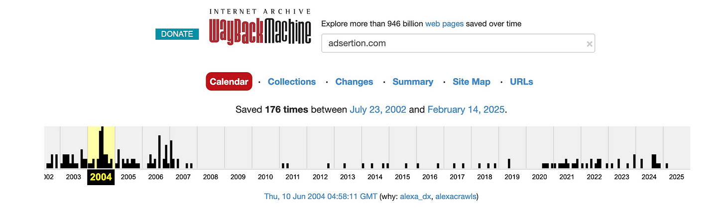 Adsertion.com is the oldest domain featured in this issue at 23 years old.