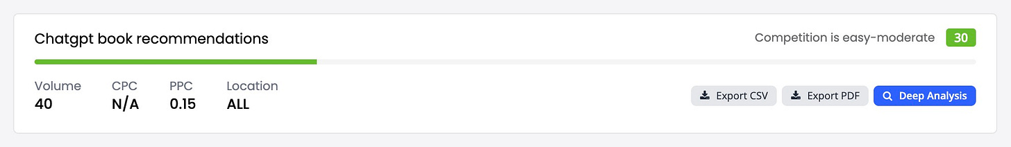 But ranking for that would be quite difficult, so if you can rank for “chatgpt book recommendations” instead and build a micro-SaaS around that idea, then it will be significantly easier.
